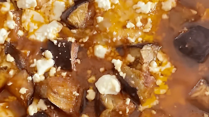- Espolvorear generosamente el plato con queso feta desmenuzado antes de servir.